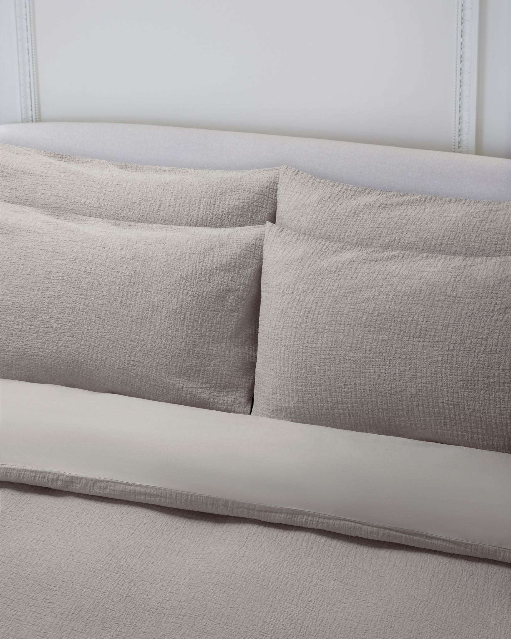 Wonderfully soft, the Double Weave range has been developed to exude the very essence of tranquillity. A unique, crinkled texture looks effortlessly sumptuous and is easy to care for, while the percale reverse feels soft against your skin. The range is available in duvet cover sets with standard pillowcases and as separate, individual standard pillowcases.