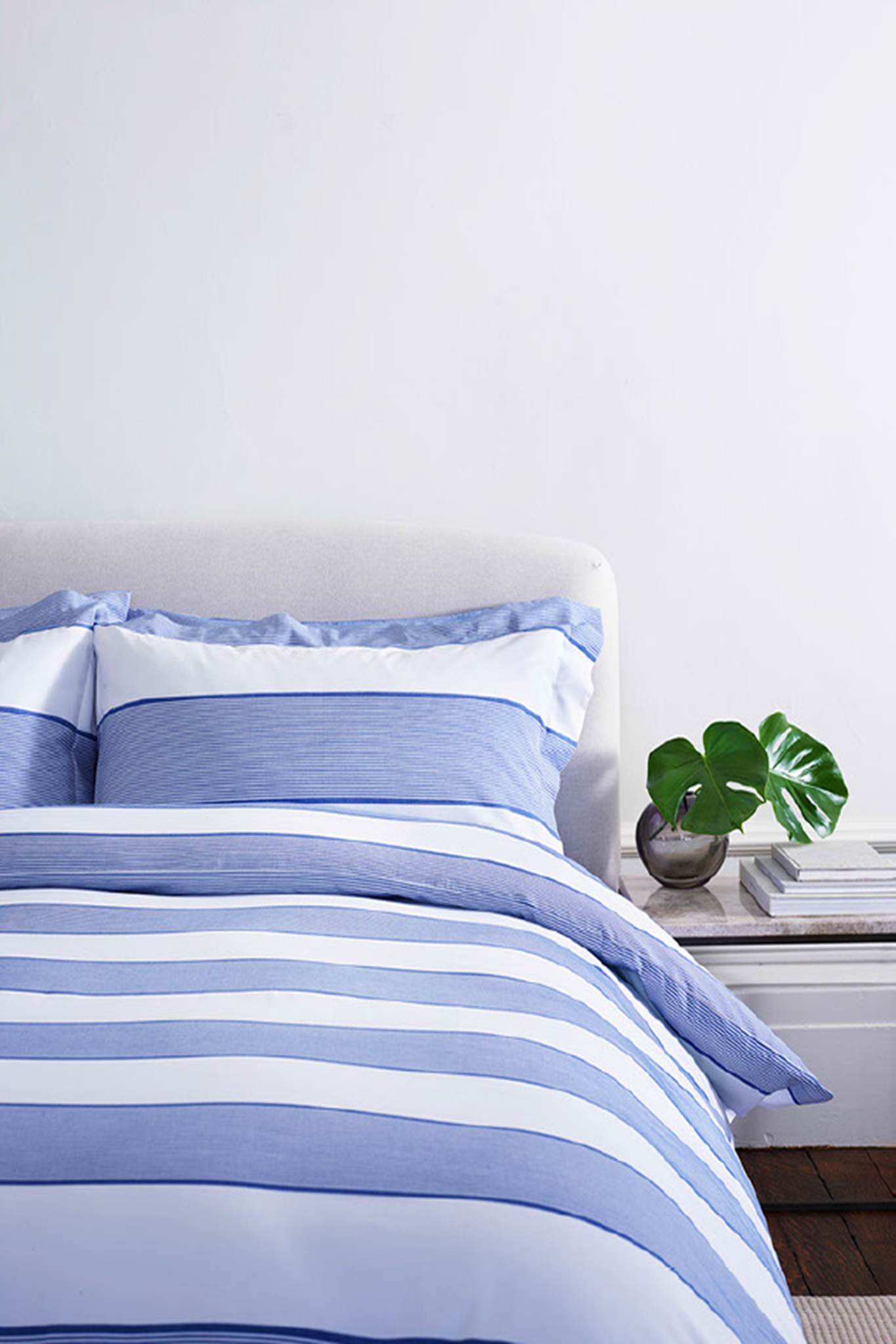 The Woven Pinstripe range uses 100-per-cent combed cotton, created using the finest yarns. These durable fabrics feel beautifully soft and are breathable and naturally hypoallergenic, making them suitable for use all year round.
