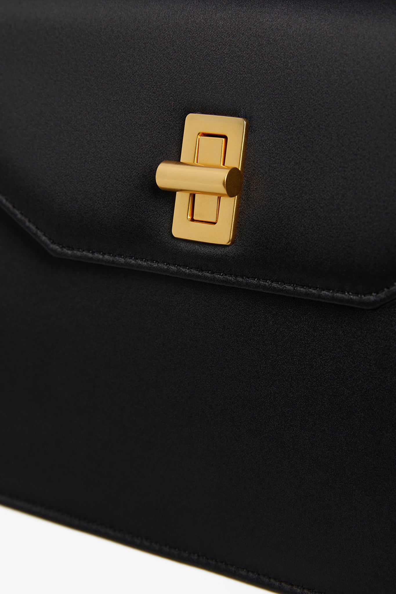 The Ivanna satin top handle bag combines smooth luxury with modern elegance. Its sleek silhouette and refined finish make it a sophisticated accessory for any ensemble, perfect for elevating your style with understated glamour.