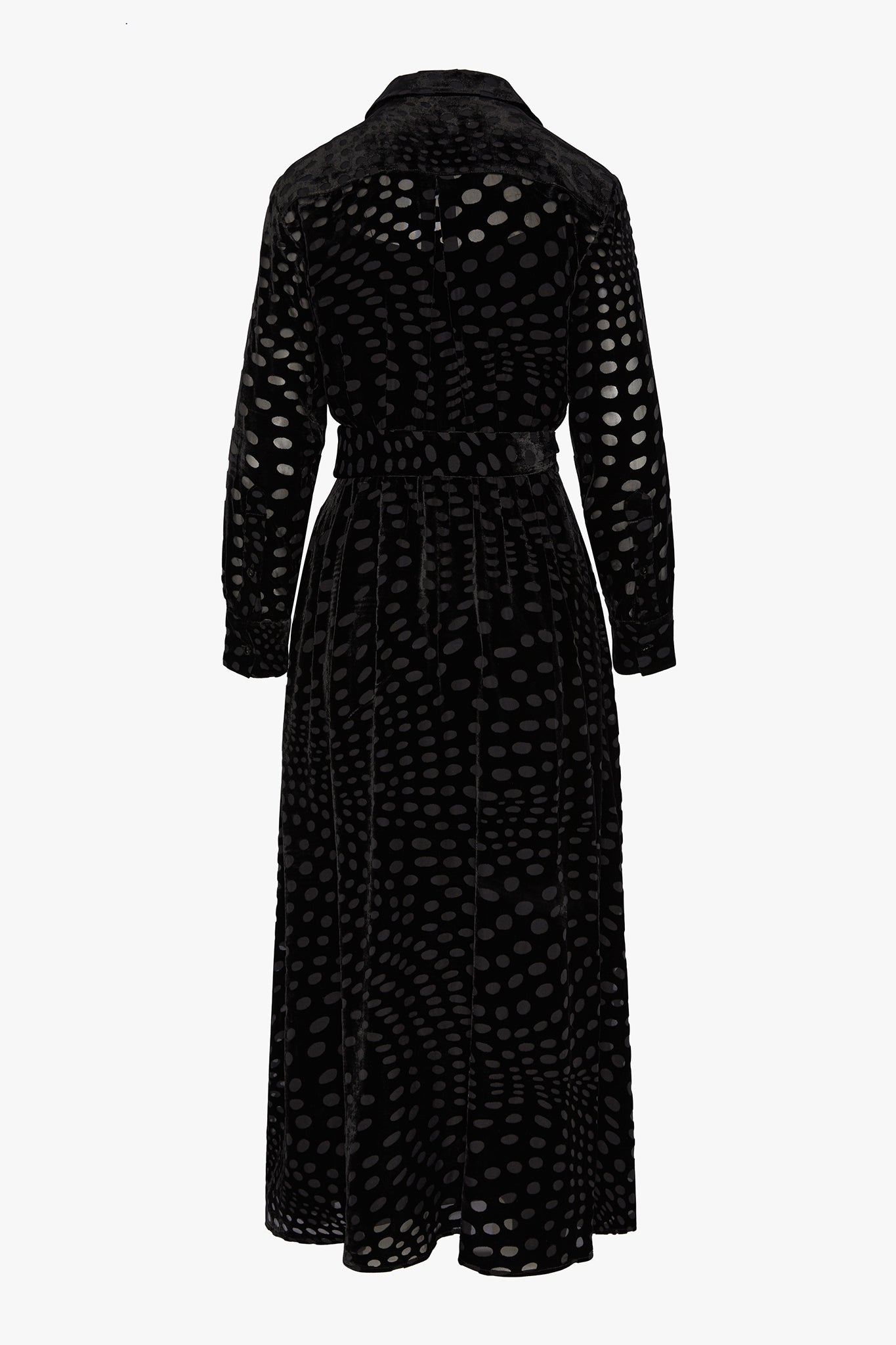 The Isabel Velvet Devoré Spot Dress offers a refined silhouette that effortlessly transitions from day to night. Crafted from delicate burn out fabric featuring our signature spot print, this dress combines contemporary elegance with versatile style. Its flattering cut and sophisticated design make it perfect for all occasions.