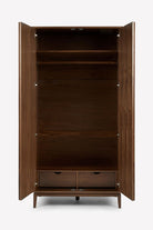Experience the ultimate blend of style and functionality with the Belgrave Walnut Wardrobe. Crafted with solid and veneered walnut, this elegant piece features vertical panels and soft close doors and drawers for a modern touch. With an internal storage drawer, shelf, and rail, this wardrobe offers both practicality and sophistication.