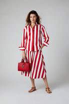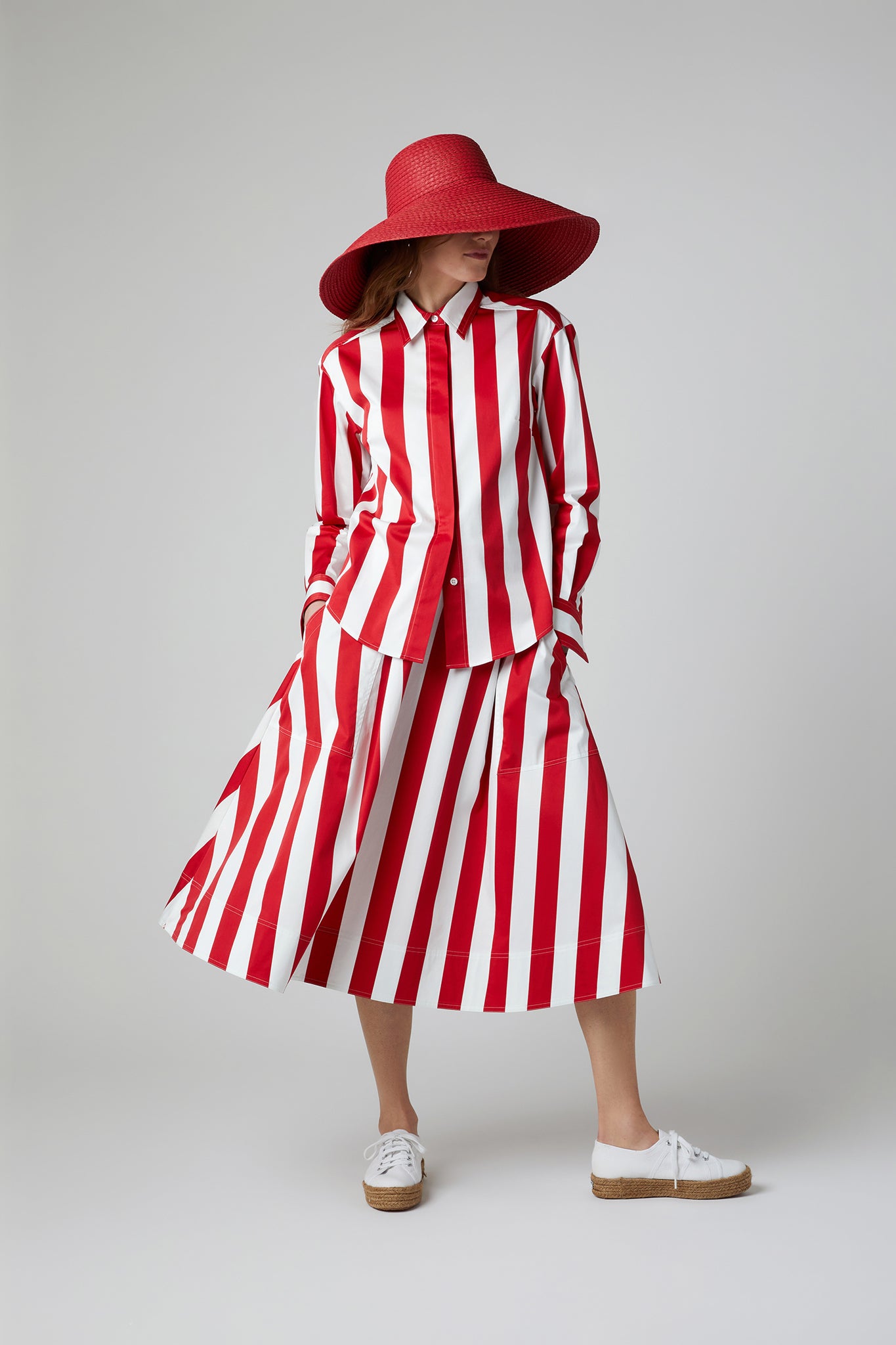 Introducing the Floretta striped cotton blend button through shirt, inspired by our signature Blythe dress. Made from the finest cotton, it exudes indulgence and effortless style. Elevate your wardrobe with this must-have piece.
