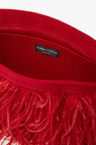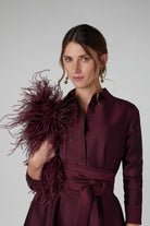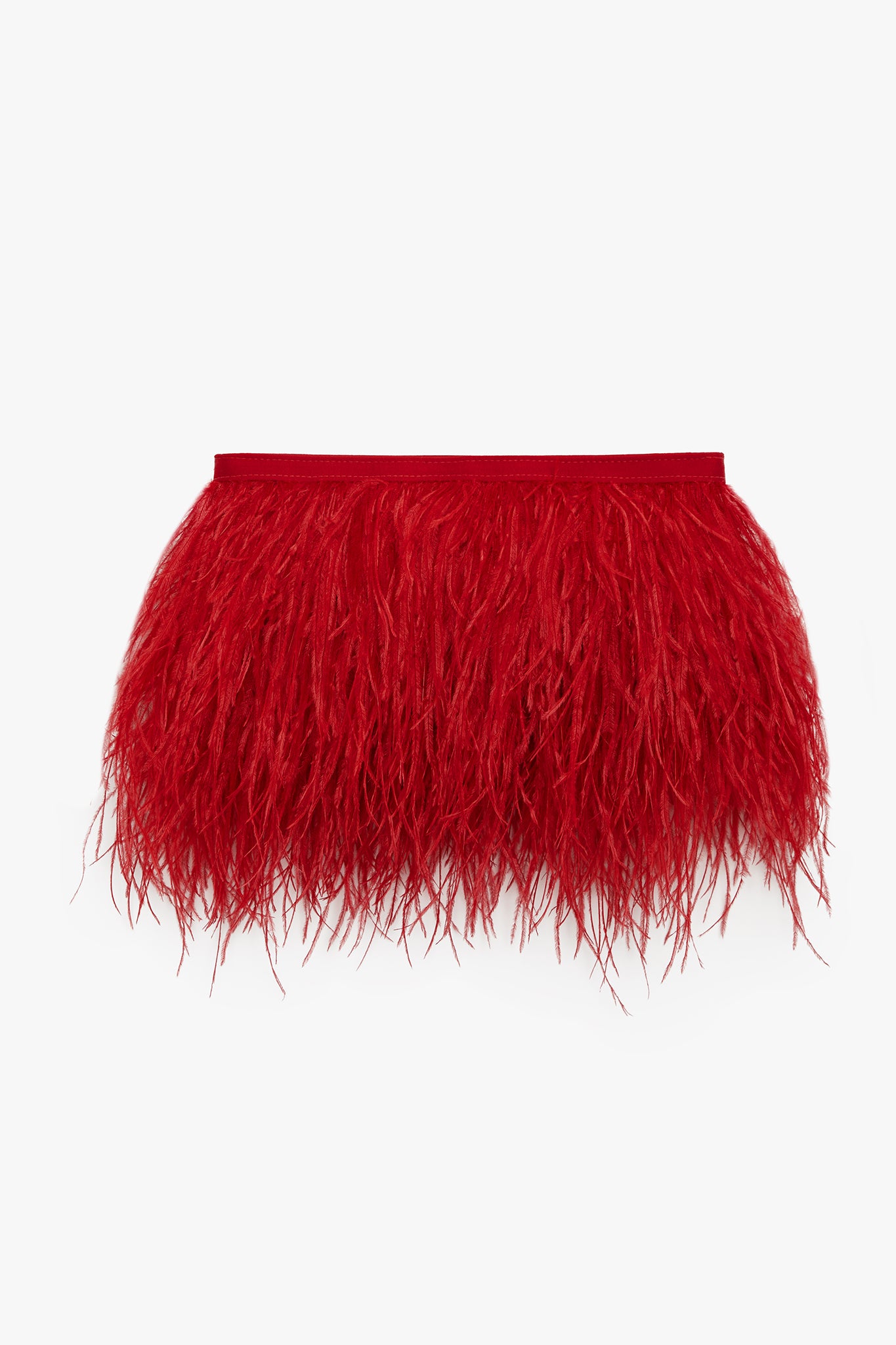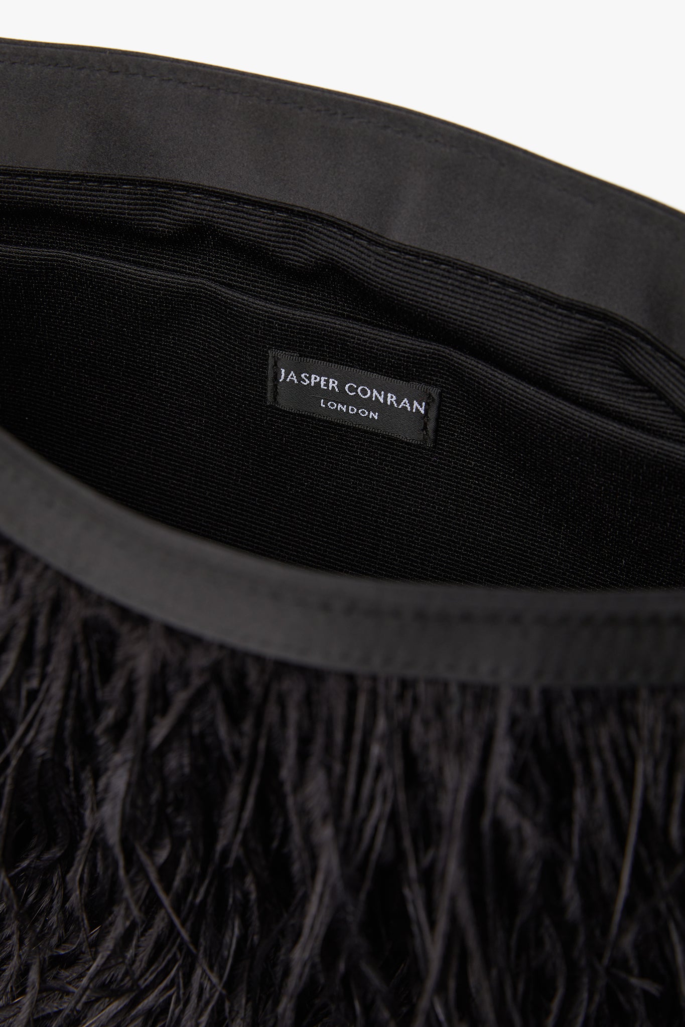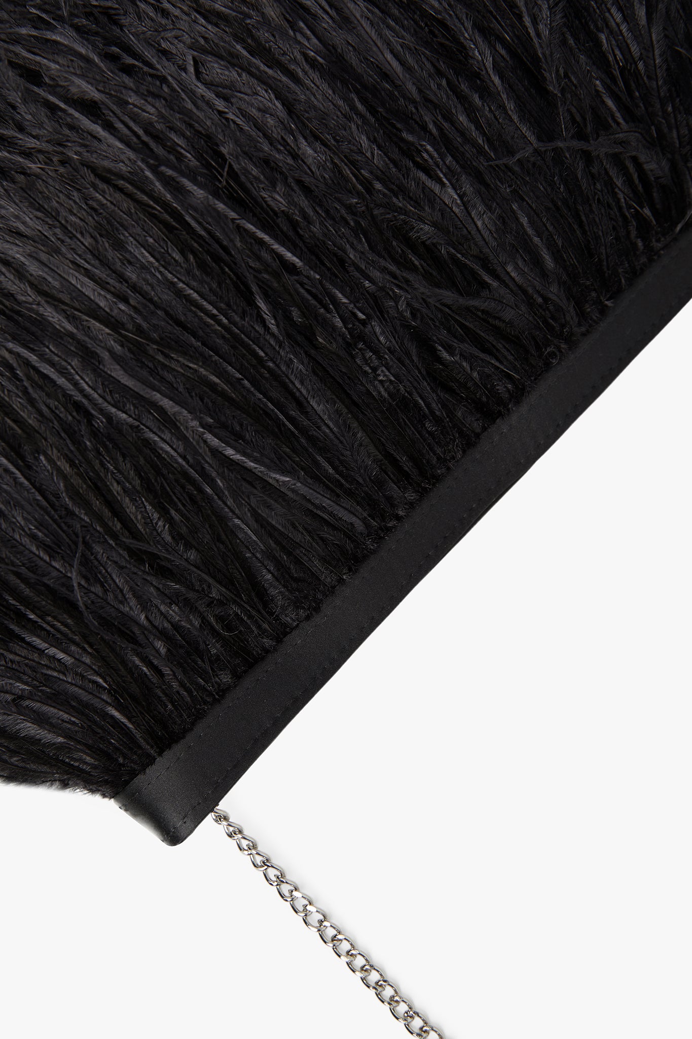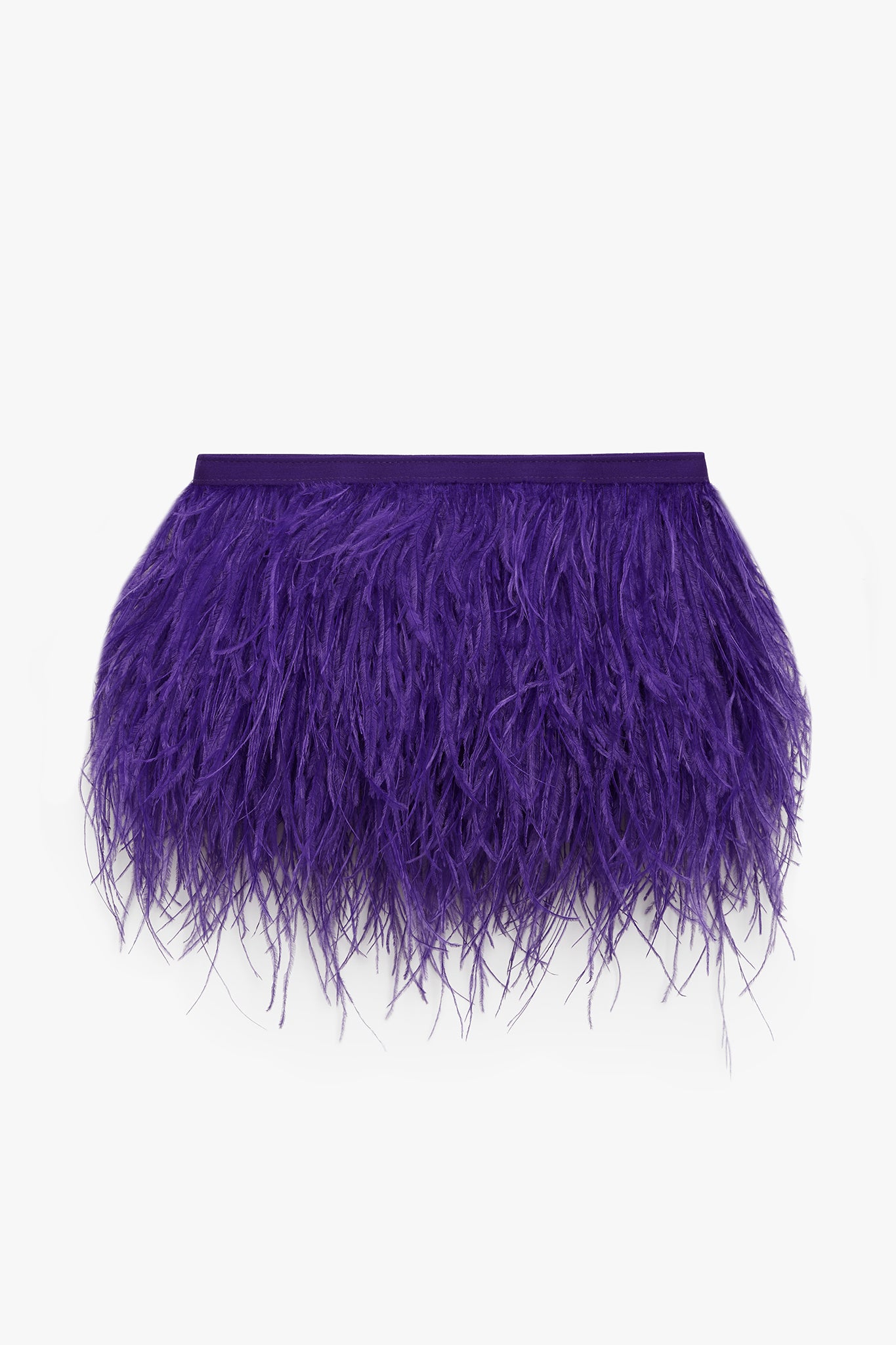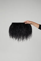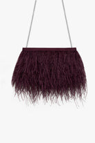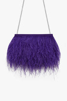 This contemporary ostrich feather clutch combines elegant texture with modern design, offering a refined accessory that enhances any sophisticated ensemble. Its understated luxury makes it perfect for stylish occasions.