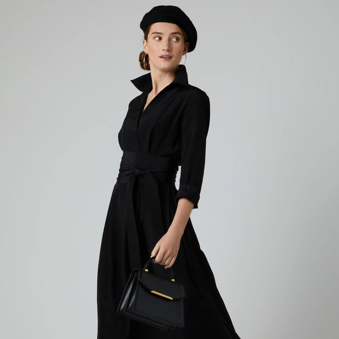 Silk is a natural fibre, prized for its softness, durability, and sheen. Silk dresses offer breathability, draping effortlessly over the body, creating a flattering silhouette. Unlike synthetic fabrics, silk naturally adjusts to temperature, keeping you cool in warmer settings and offering comfort in cooler environments. Silk dresses, such as those at Jasper Conran London, epitomise luxury and craftsmanship. Our renowned Celia collection comes in a range of colours perfect for all seasons; our standout black Celia in particular presents a classic silhouette, ensuring you look and feel your best.